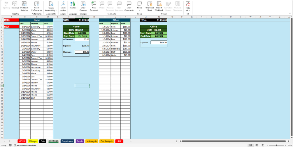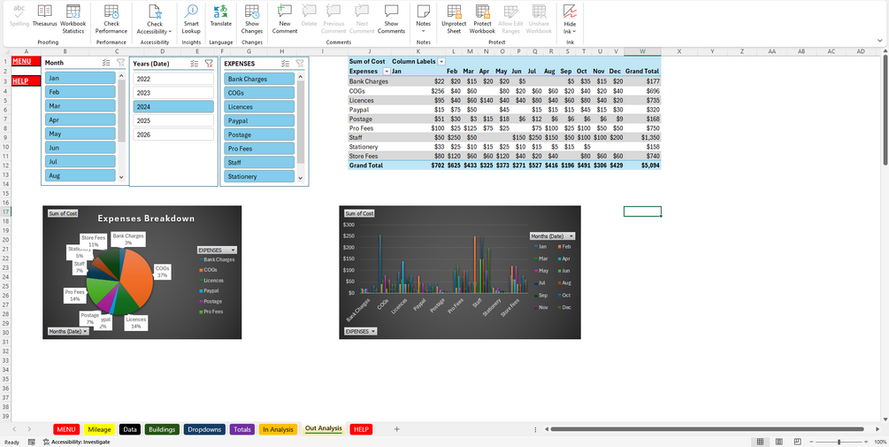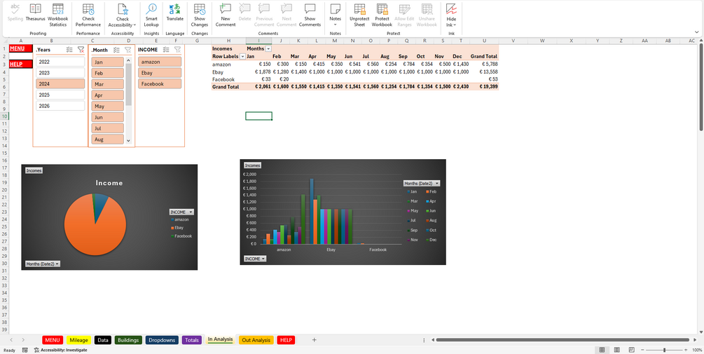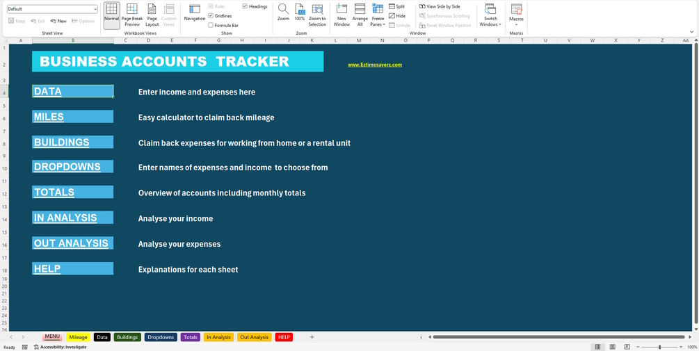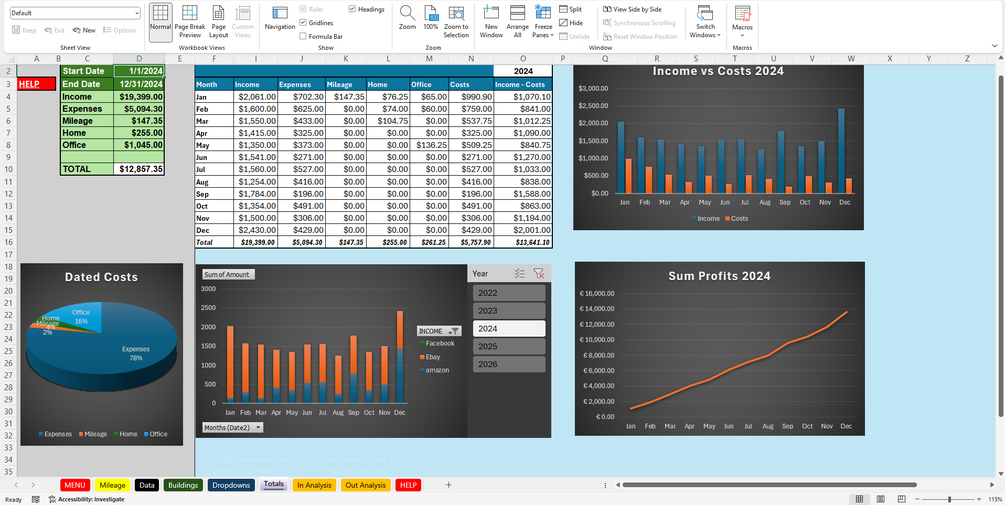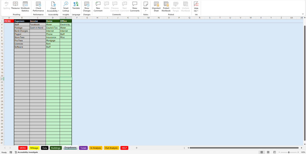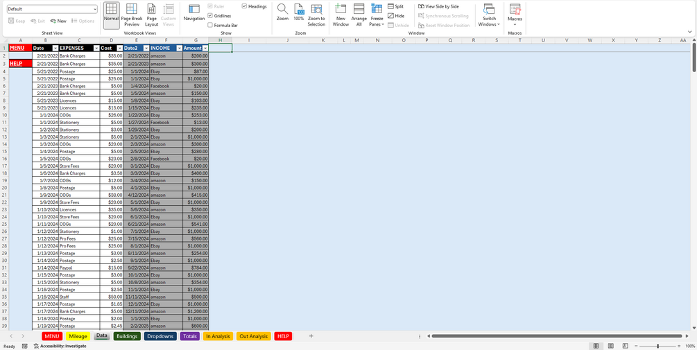 Spreadsheet for accounts